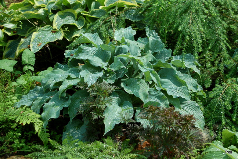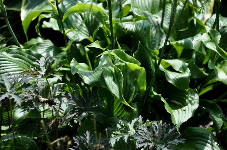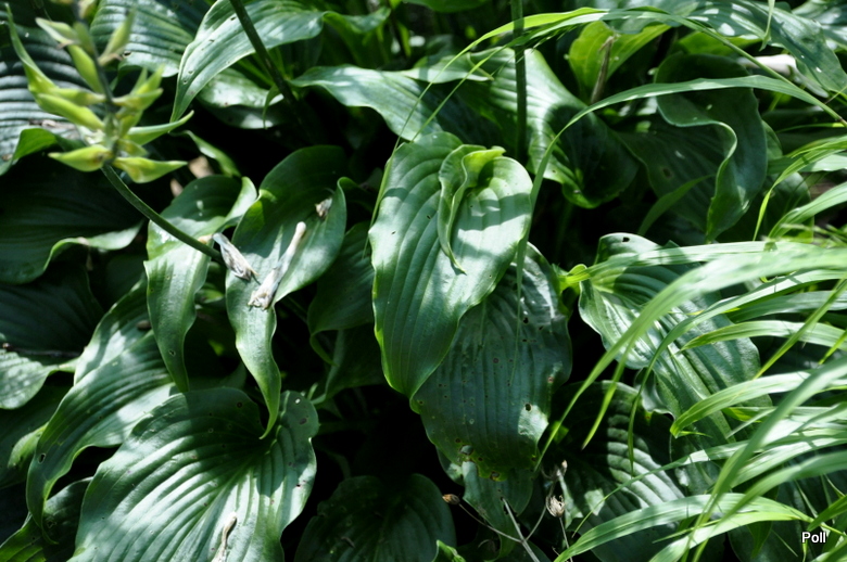 Liście: duże, dobrej substancji o podłużno-sercowatym kształcie; niebieskosrebrne z mocno pofalowanym brzegiem i dobrze widocznym unerwieniem