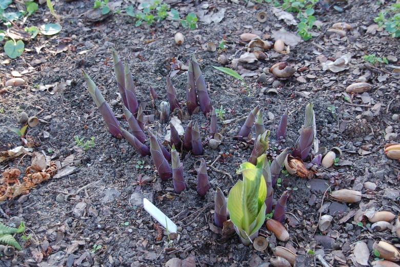 Hosta Squash Casserole nie spieszy się ze startem, choć niektóre pojedyncze kły już się rozwijają. Jej stanowisko wiosną jest mocno słoneczne, bo dąb dośc późno wypuszcza liście.