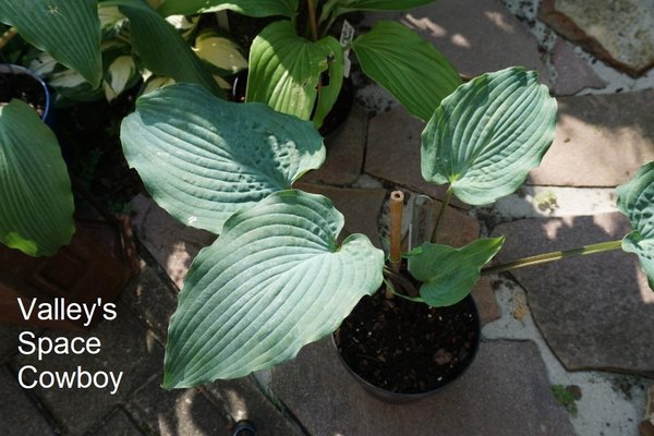 Rozmiar M wedle danych rejestracyjnych ma osiągać około 50 cm wysokości przy 50 cm szerokości Liście: sercowate, o wymiarach około 19 x 13 cm... intensywnie niebieskie z pofalowanym marginesem... matowe, lekko pofałdowane, dobrej substancji... osadzone na fioletowo nakrapianych łodyżkach Kwiaty: jasnolawendowe (VI/VII) na fioletowych 80 cm łodygach Zalecane stanowisko: pólcień/cień