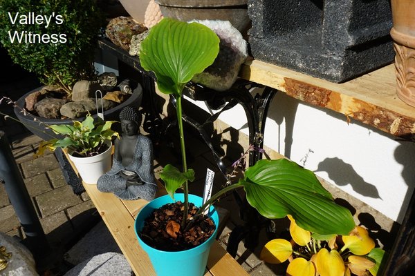 Rozmiar M wedle danych rejestracyjnych ma osiągać około 30 cm wysokości przy 40 cm szerokości Liście: sercowate, o wymiarach 18 x 12 cm... ciemnozielone, mocno błyszczące, z lekko pofalowanym marginesem, dobrze widocznymi nerwami oraz białym spodem ... osadzone są na ciemnoczerwonych łodyżkach Kwiaty: fioletowe (VIII/IX) na ciemnoczerwonych 60 cm łodygach Zalecane stanowisko: pólcień/cień