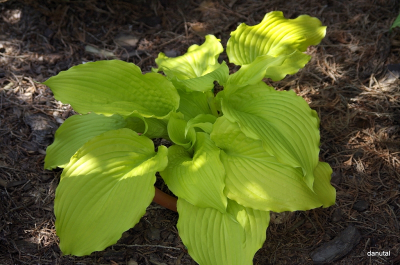 Sześciolatka , dzielona i po przejściach z gryzoniami. Wdzięczna i ujmująca hosta, mocno jaskrawa, szczególnie wiosną.