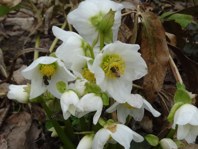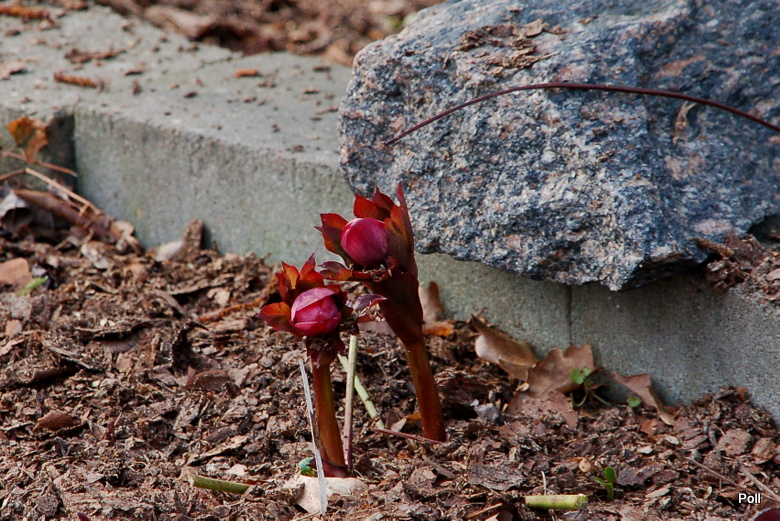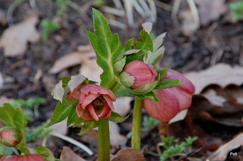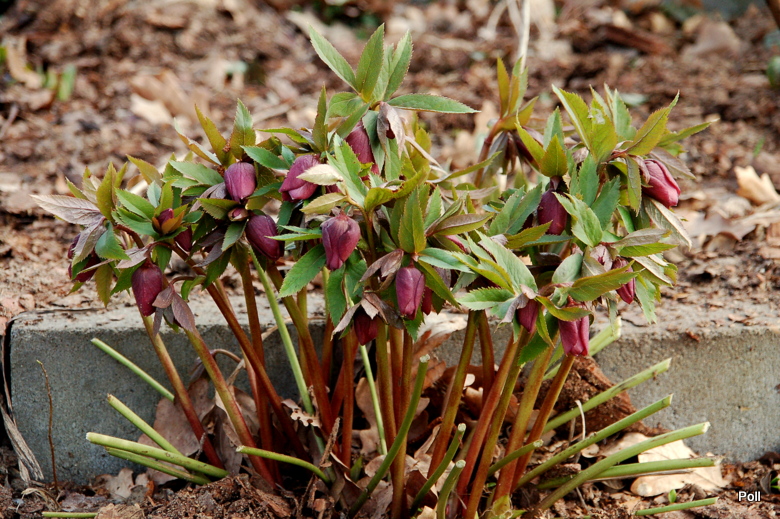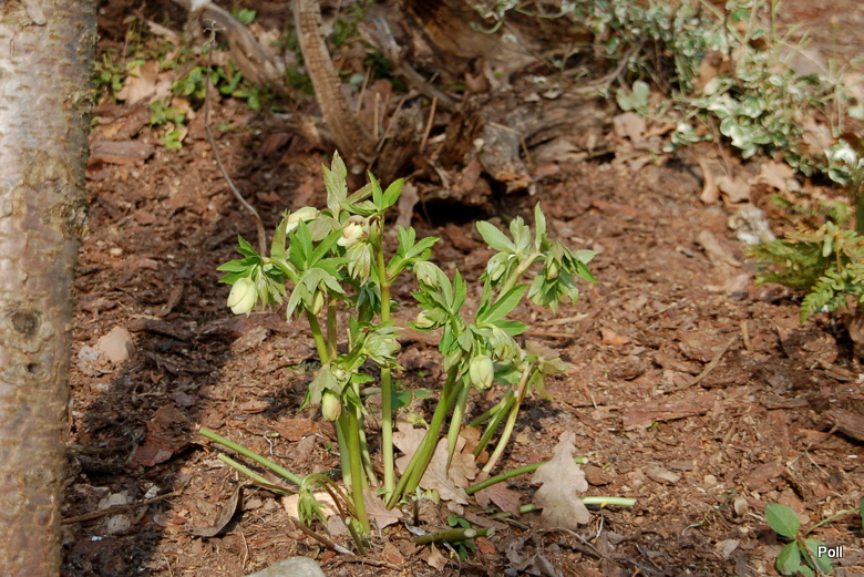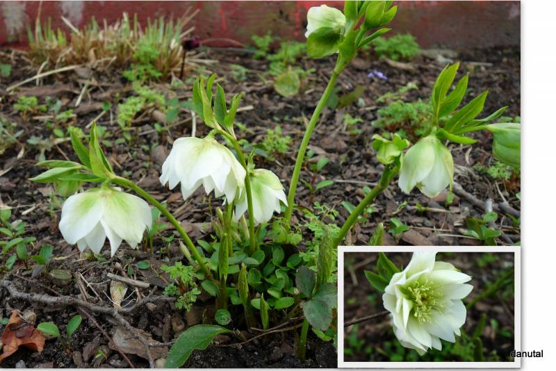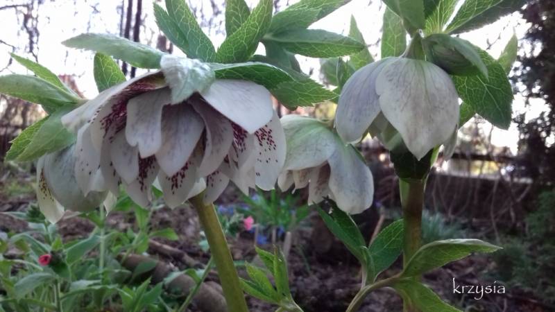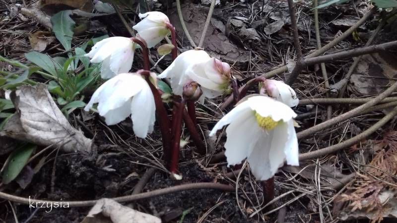 Generalnie powoli idzie rozwijanie paków ciemierników. Noce są bardzo zime, wczoraj było -2C. W dzień niby cierpło, ale zimne wiatry powodują, że odczuwalna temperatura jest sporo niższa, niż te 7C na termometrze.