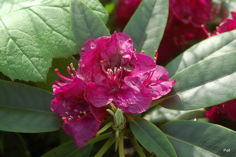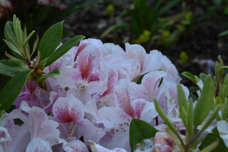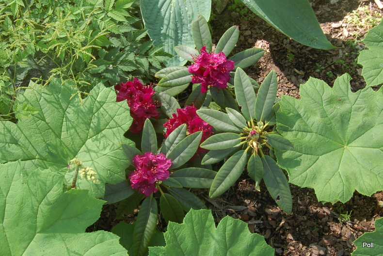 Mam jedno zdjęcie Rh Olin O.Dobbs, ale on juz dawno u mnie przekwitł, jeszcze przed zlotem. Miał tylko 3 grona kwiatów i to nieco zniekształcone, więc nie mogę byc do końca pewna, czy to on. Kolor bardziej jednak pasi, niz w wypadku 'Karl Naue', bo on bardziej krwisty.