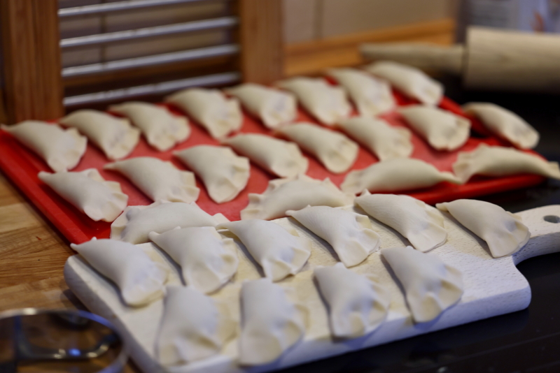 Ciasto na pierogi robię od zawsze (tzn. od przedszkola). Kiedyś było to dla mnie danie awaryjne. Jak nie wiadomo było co na obiad - to "liniłam" pierogi. Farsz zawsze jakiś się znalazł