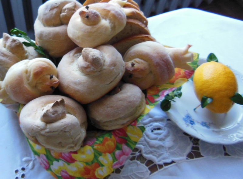 U nas - w sensie w domu rodzinnym - na Wielkanoc mama zawsze piekła w prodiżu drożdżową bułkę z kwoką i kurczaczkami. Ja zrobiłam monster-kurki-bułki ;)