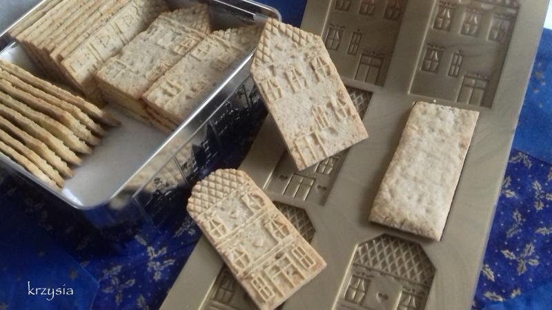 Upiekłam też ciastka z przepisu załączonego do foremek, ale wycinałam je szklanką i użyłam pieczątek do ozdoby, niestety nawet dość duże wyciskane wzory są słabo widoczne, nie zrobiłam więc im fotek. Ciasto nie nadaje się na filigranowe wzory spekulatius, ale ciasteczka są pyszne, można wykorzystać inne wykrojniki.
