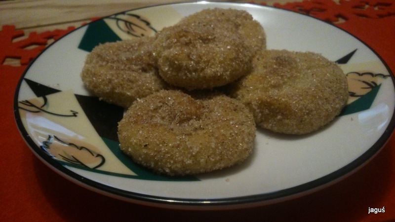 Wymiksować, wsadzić na godzinę do lodówki. Po tym czasie uformowac w reku kulki, wrzucic do miseczki z cukrem pudrem, obtoczyc i układac na blaszce.