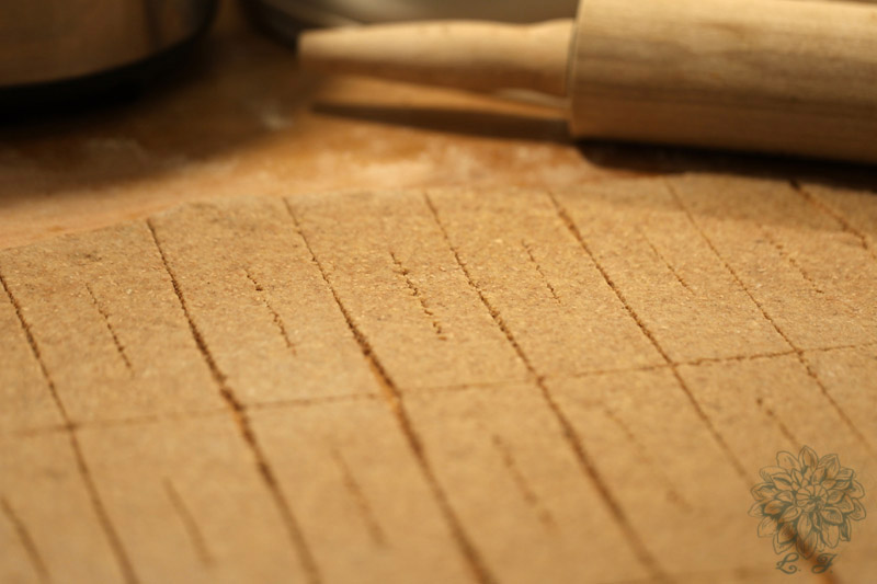 Podsypując ciasto mąką (tylko tyle, by się nie kleiło), rozwałkować na grubość około 5 mm lub na oko