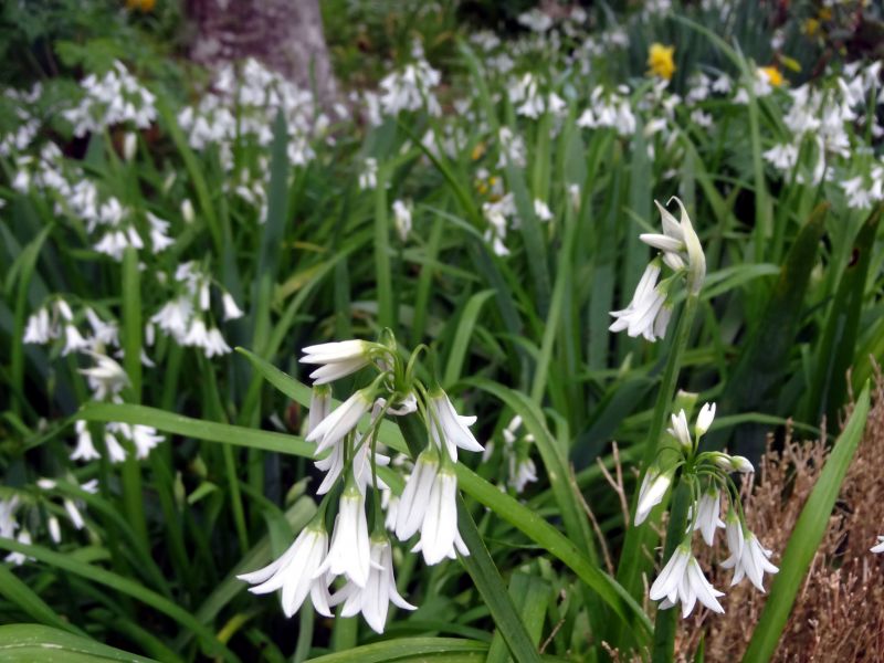 Wysokość: do 20 cm. Kwiaty: białe, zwisające, dzwonkowate. Kwitnie: V. Liście: 2–3 wąskie; zamierają w trakcie kwitnienia. Rozmnażanie: rozdzielenie cebul przybyszowych co 2–3 lata.