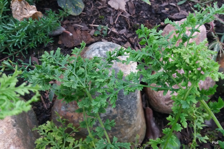 Rok temu, pokazały sie w kępie inne liście - większe nieco, rozdwojone na końcu, jaśniejsze, ale również 'plastikowe'. Ta część siewki rosnie dynamiczniej i muszę chyba postarać się ja oddzielić, aby nie zdominowała całości