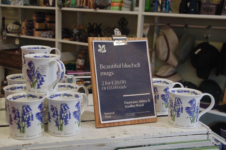 To narodowe kwiaty Anglii, więc w sklepie z pamiątkami Founttains Abbey, kuszą hiacyntowcowe, pamiątkowe kubki