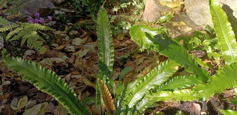 Asplenium scolopendrium 'Supralineatum' opuścił na ziemię wszystkie starsze liście, wiec obawiałam się, ze już po nim. Gdy się nieco ochłodziło, pojawiły się nowe pastorały, które rozwijają się bardzo szybko.
