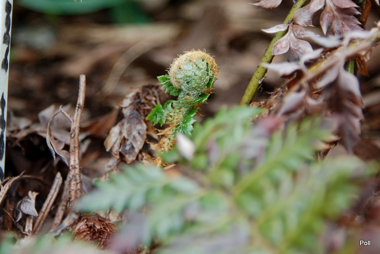 Polystichum neolobatum, choć młodsze, przezimowało o niebo lepiej.