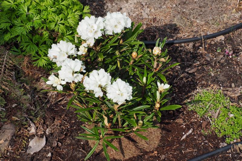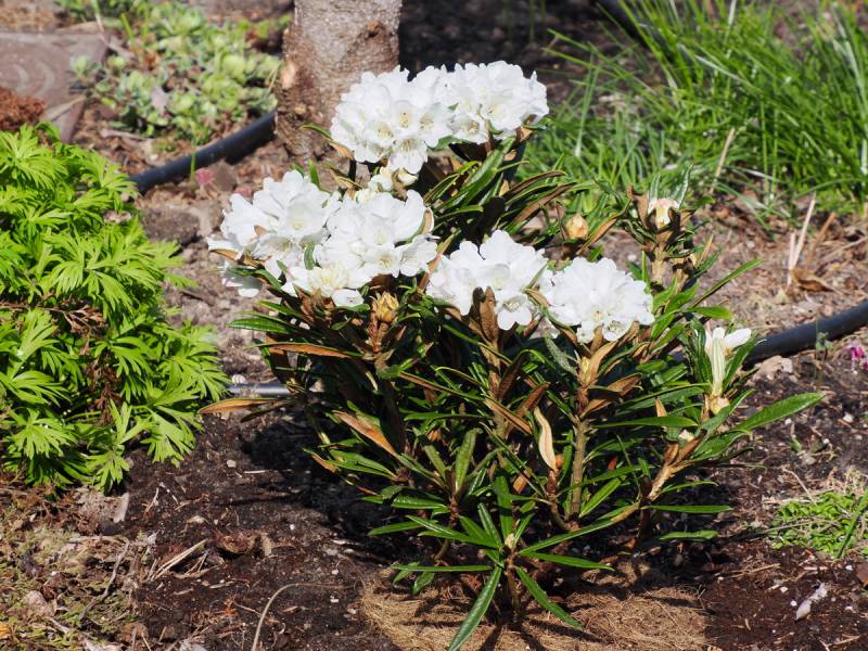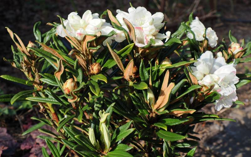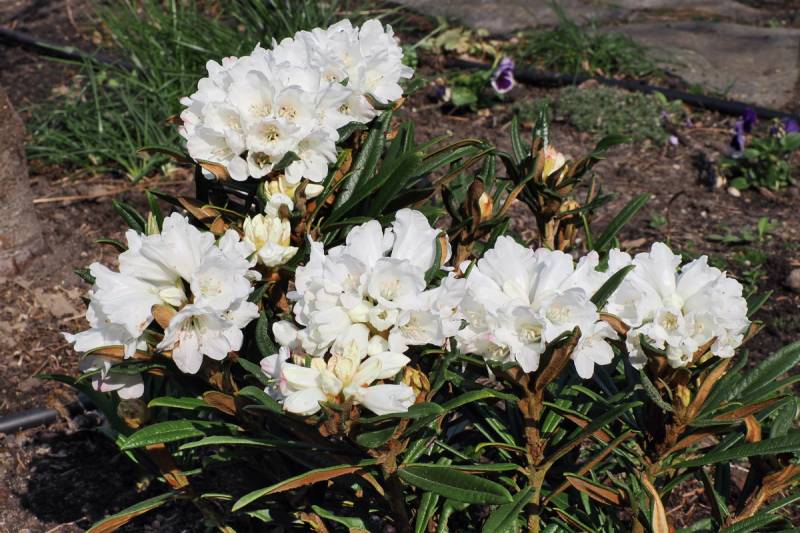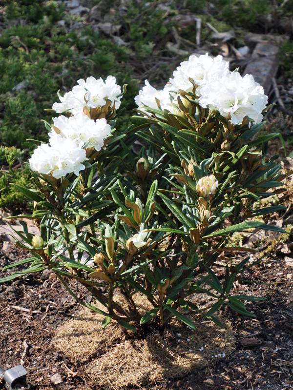 Rhododendron roxieanum var. cucullatum - ma najszersze liście, najgrubsze indumentum i jest największą odmianą tego gatunku w uprawie