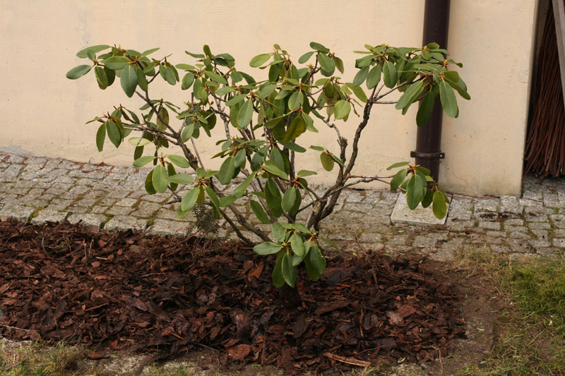 Liście: ciemnozielone, z wierzchu błyszczące... młode brązowawe... duże, o długości od 9 do 16 cm... na brzegach lekko pofalowane