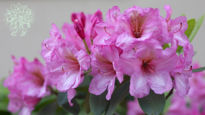 Kwiaty: w pąku różowoczerwone... po otwarciu karminoworóżowe, na brzegach nieco jaśniejsze i lekko pofalowane z licznymi cętkami zlewającymi się w wyraźną brązowozieloną plamkę na górnym płatku... lejkowate... duże, średnica pojedynczego kwiatu od 6,5 do 8 cm... zebrane po 10-12 sztuk w szerokie, płaskokuliste, wierzchołkowe kwiatostany...