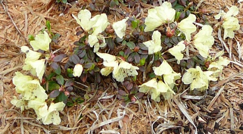 Różanecznik Ludlowa w ogrodzie beza