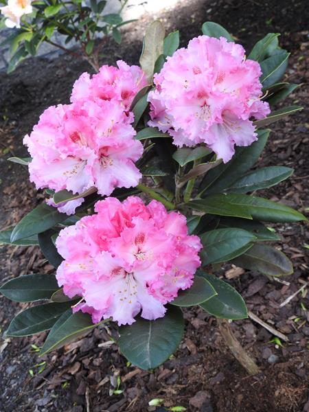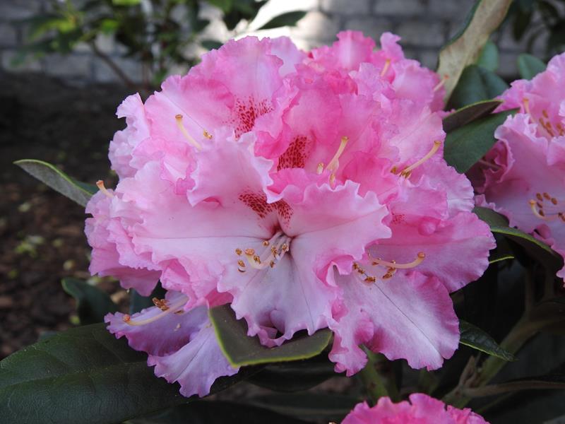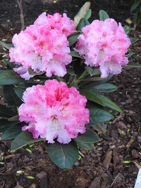 Selekcjoner: Wilhelm Sagemüller, Niemcy (wprowadzenie do handlu: 1986) Pokrój: płaskokulisty Siła wzrostu: roślina wolnorosnąca... po 20 latach dorasta do około 0,80 m wysokości i około 1,80 m szerokości Liście: szarawozielone z wierzchu, od spodu pokryte białą wyściółką... eliptyczne... o długości do 12,5 cm Kwiaty: w pąku intensywnie różowe, po otwarciu początkowo jasnoróżowe z ciemniejszymi, fryzowanymi krawędziami i białym centrum oraz wyraźną, ciemnoczerwoną plamką na górnym płatku, z czasem kolory blakną... lejkowate... zebrane po 12-14 sztuk w kuliste, wierzchołkowe kwiatostany Termin kwitnienia: druga połowa maja Mrozoodporność: do -20 °C (Ciepłucha; Heinje)/ -23 °C (ARS)/ -24 °C (Schmalscheidt)