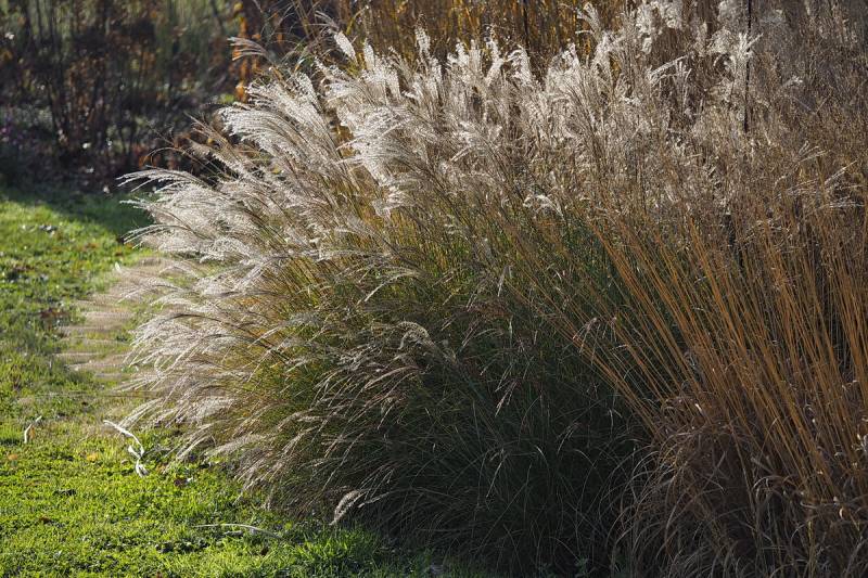 Mój rośnie w wielkiej kępie traw więc trudno zauważyć dokładnie wszystkie jego cechy, ale bardzo ważne jest to że u mnie to najdłużej zielony miskant;