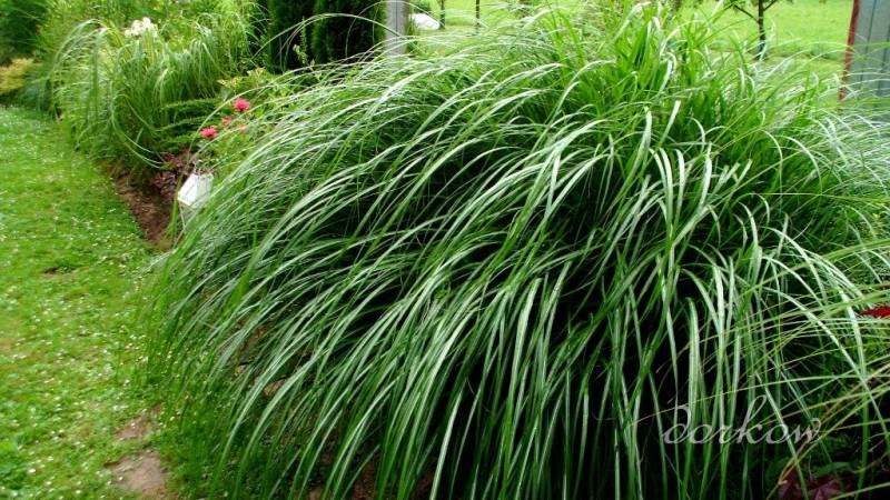 Uwagi w grupie miskantów nadaje się na pierwszy plan ze względu na kształt kępy, doskonały jako niski soliter !
