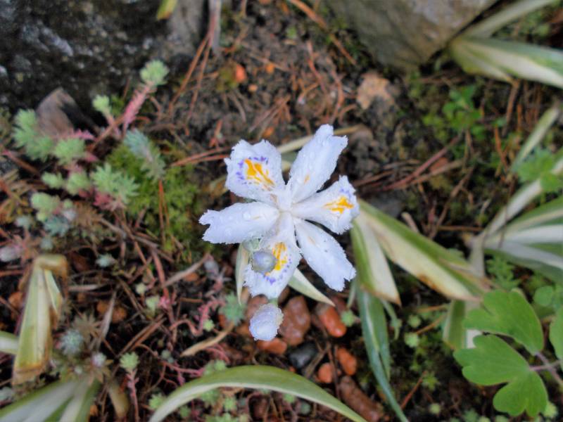 Nie wiem czy to irys , ale możliwe że to wędrujący irys i jeszcze zakwitł malutkim kwiatuszkiem :)