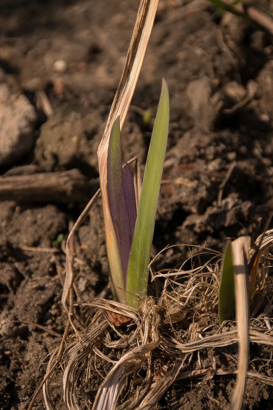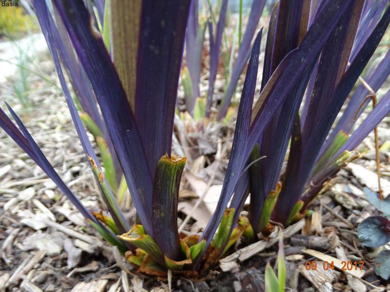 Liść: mieczowaty, wiosną fioletowy z metalicznym połyskiem, pózniej zielony