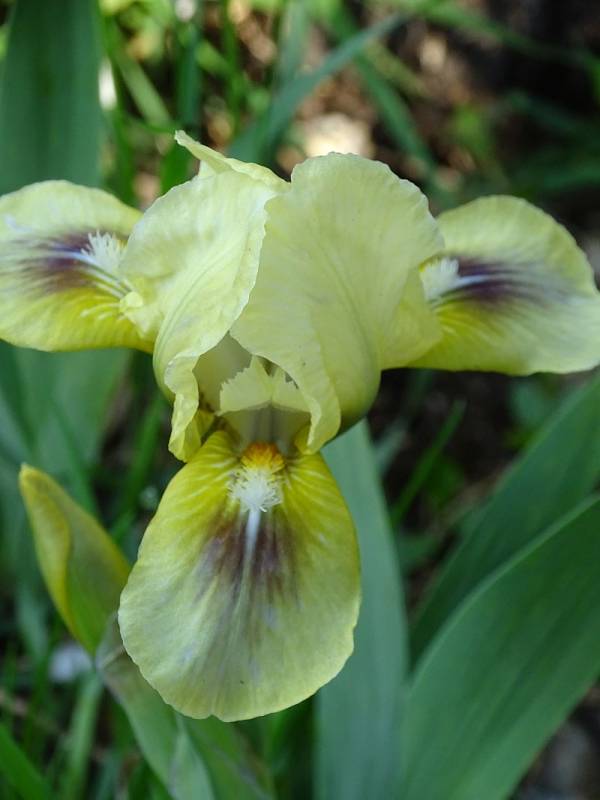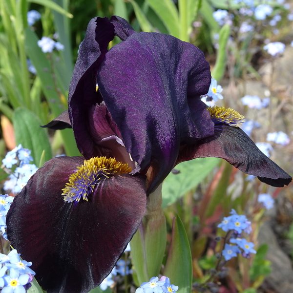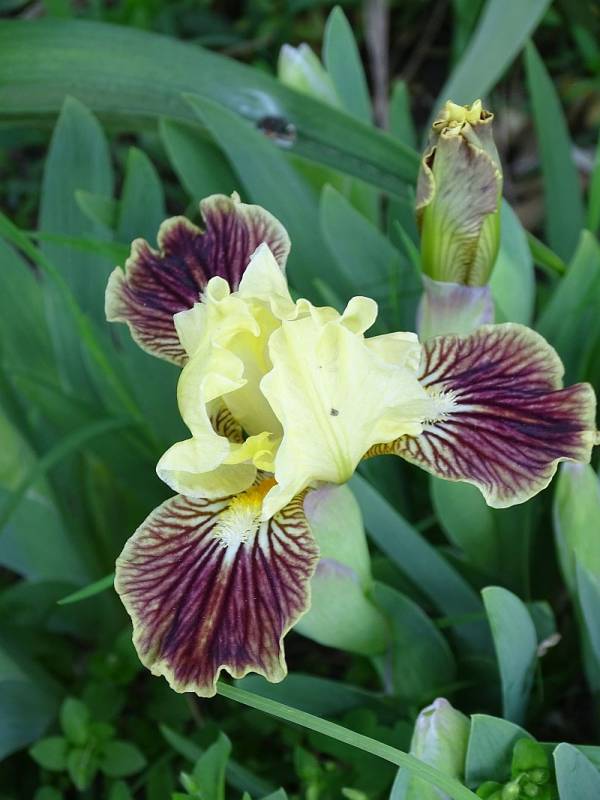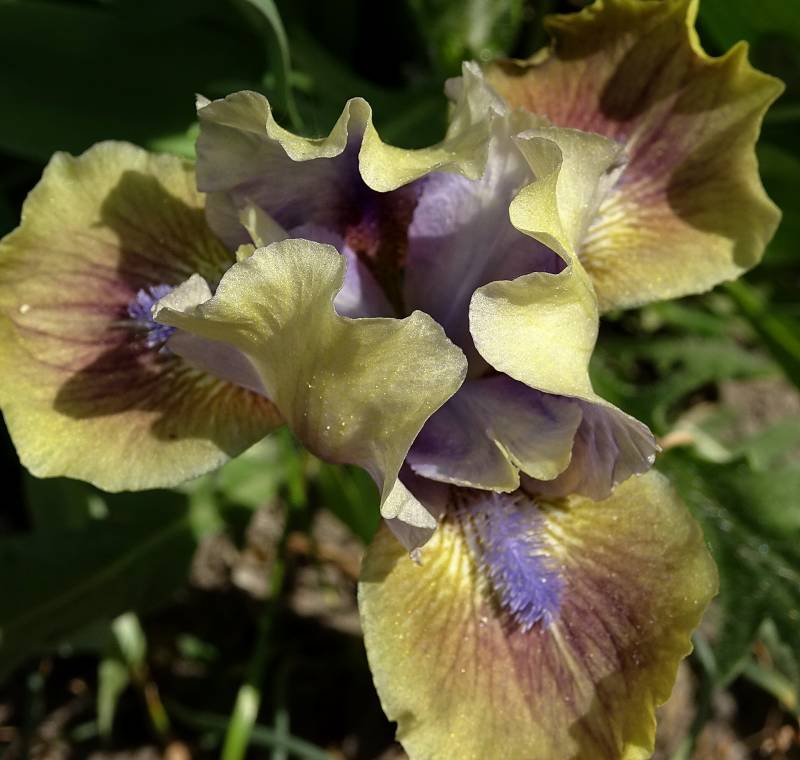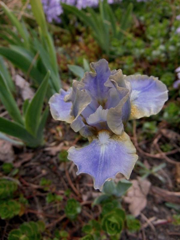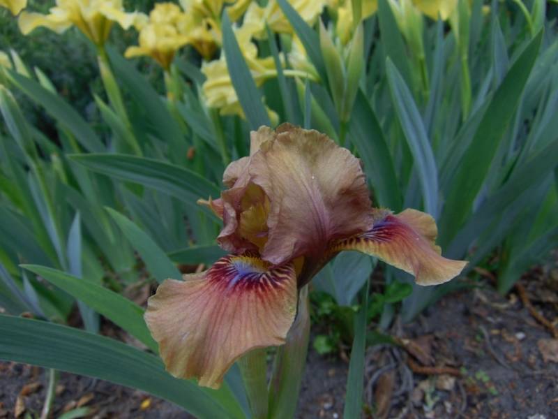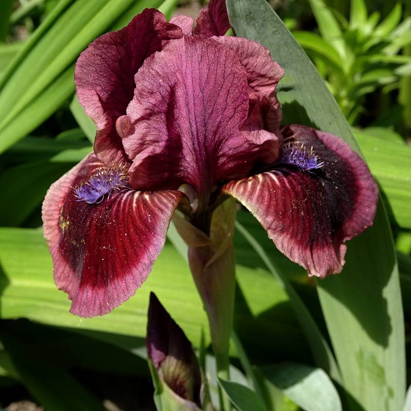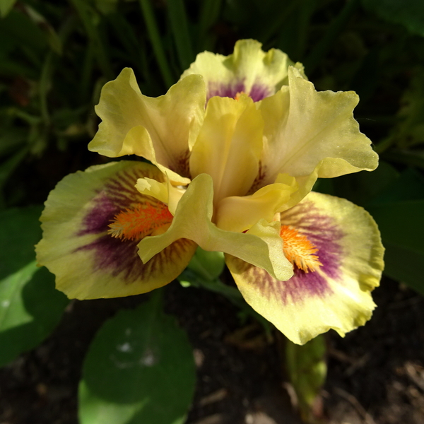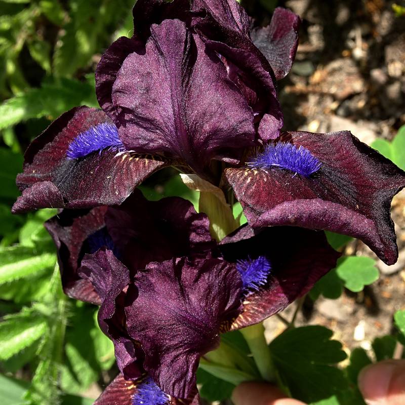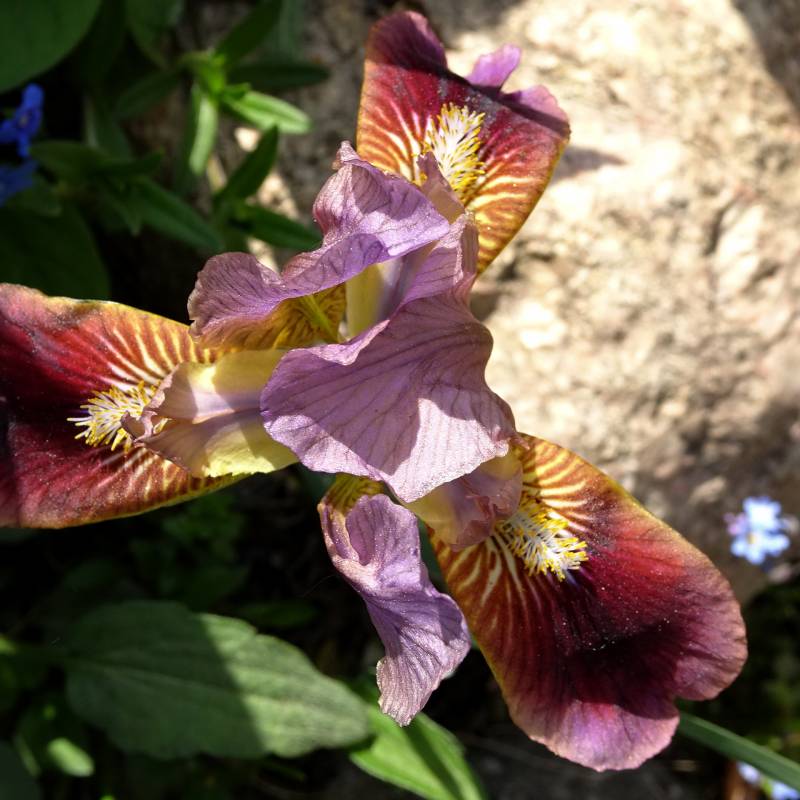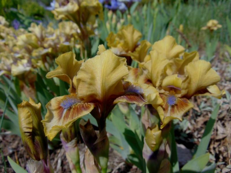Iris balkana. Gatunek dorastający do trzydziestu cm wysokości, wcześnie kwitnący irys, o kwiatach występujących w dwóch kolorach - żółtym i purpurowym. Ma charakterystycznie wysoko sklepioną kopułę i podwijające się płatki dolne. Na początku XX wieku był namiętnie krzyżowany z innymi gatunkami irysów, jest uznawany za jednego z protoplastów irysów SDB.