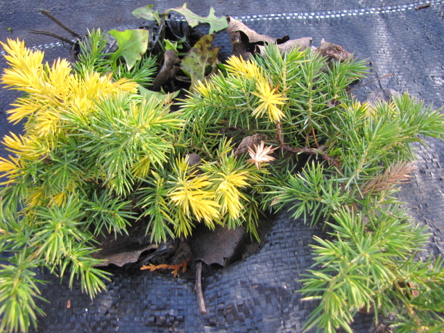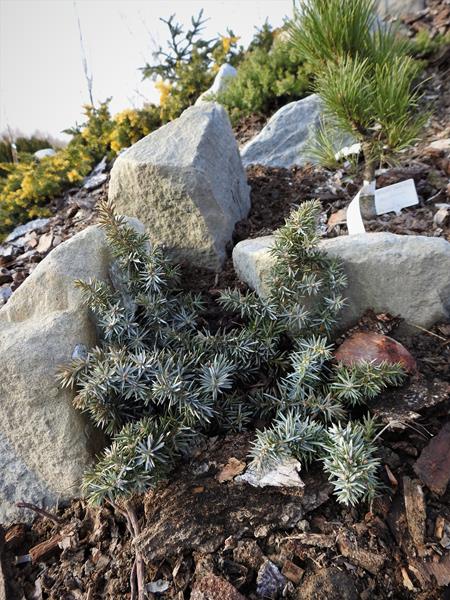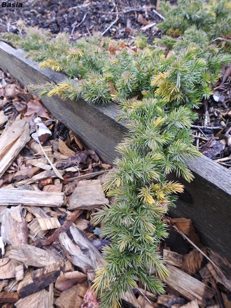 Jałowiec nadbrzeżny 'Golden Wings' jesienią zeszłego roku przesadziłam na skalniak.
