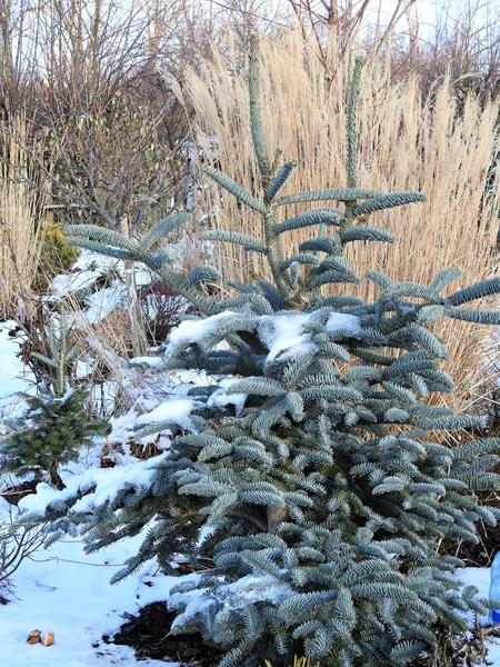 Igły zwykle 20-35 mm długości, tępo zakończone, osadzone gęsto, spiralnie, wygięte mocno do góry. Koloru od zielonoszarego do ciemnozielonego, posiadające z obu stron jasny, woskowy pasek.