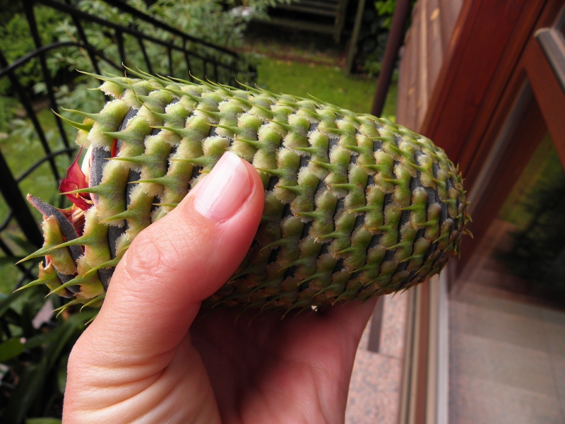 Koloru jasnobrązowego, o jasnych odstających, ostrych łuskach, duże, wzniesione pionowo. Poszczególne łuski posiadają specyficzne wyrostki.