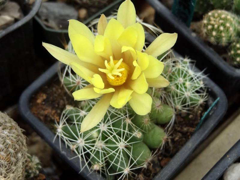 Mammillaria sphaerica wielkokwiatowa - kwiat większy niż kaktus z przyrostami