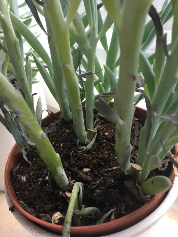 ciemniejszą, jakby lekko bordową łodygę, a mandraliscae ma łodygę w kolorze liści.