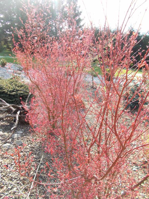 Pędy: brązowo-czerwone, szczególnie atrakcyjne zimą.
