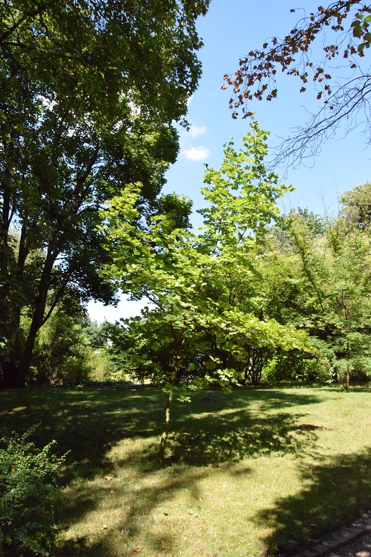 Pochodzenie: występuje na stanowiskach naturalnych w Ameryce Północnej, rośnie w wilgotnych, skalistych glebach nad brzegami rzek, wąwozami, lasami i klifami. Wymagania : preferuje glebę umiarkowanie wilgotną do wilgotnej, dobrze zdrenowaną, o lekko kwaśnym odczynie, ale jest tolerancyjny na suszę i zacienienie. Wielkość: na stanowiskach naturalnych dorasta do 8-9 m wysokości. Pokrój: średniej wielkości drzewo, często wielopniowe o dość regularnej, kulistej koronie Liście: dł. 5-9 cm, szerokie, o falistych lub grubo ząbkowanych krawędziach. Jesienią liście zmieniają kolor od jaskrawego żółtego przez pomarańczowy do głębokiej czerwieni. Mrozoodporność: dobra (strefa 5) Uwagi: niektórzy botanicy klasyfikują A.leucoderme jako podgatunek klonu cukrowego: A. saccharum subsp. leucoderme.