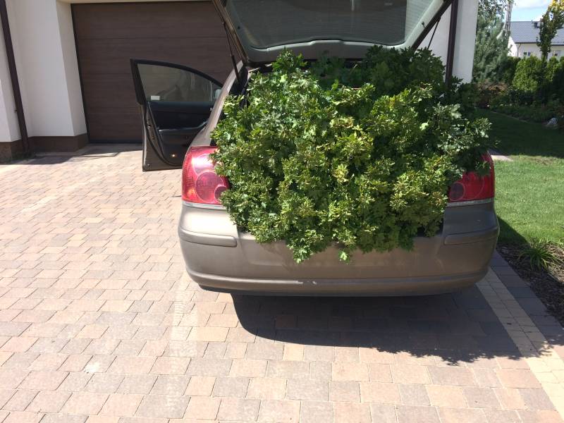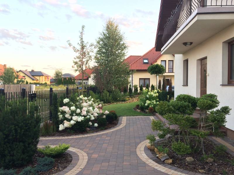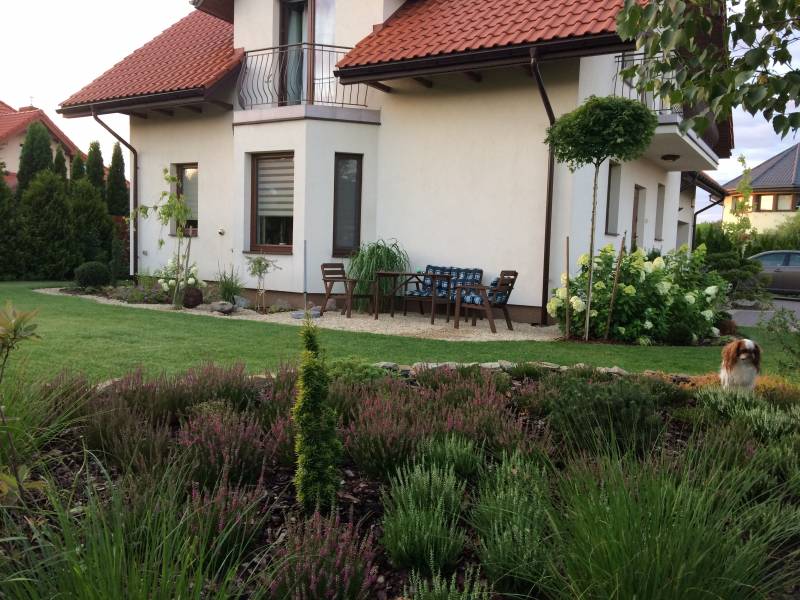 Robiąc to zdjęcie, zauważyłam, że zwracałam uwagę na to, by kulista korona pasowała do cisowych kulek na froncie... a zapomniałam, że ogromne kuliszcze rośnie przecież na lewym skraju tarasu... no pięknie mi się to drzewko wpasowało