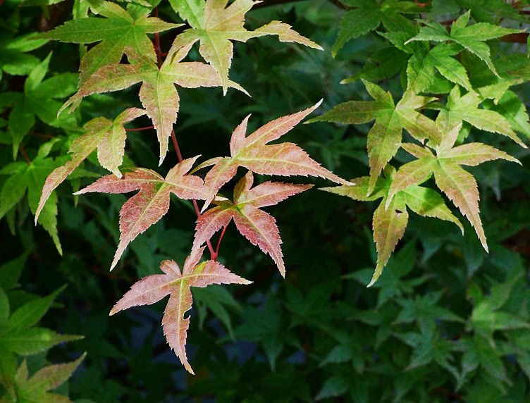 Pochodzenie: odmiana znana w Japonii przed rokiem 1900 Wymagania: stanowisko słoneczne lub półcieniste, osłonięte od wiatru, gleba równomiernie wilgotna, próchniczna, o odczynie lekko kwaśnym Wielkość: dorasta do 3-4 m Pokrój: rozłożysty Liście: 5-klapowe, głęboko wcięte aż do nasady, dość małe 5-6 cm, różowo szkarłatne wiosną, jasnozielone latem, jesienią wybarwiają się na czerwono Mrozoodporność: młode egzemplarze zaleca się okrywać na zimę