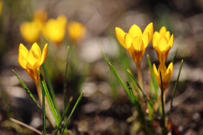 Crocus chrysanthus 'Mariette'. Zamówiłem te Krokusy, bo na zdjęciu wyglądały jak odmiana 'Gipsy Girl', której chciałbym mieć więcej, ale od kilku lat nie udaje mi się jej skutecznie dokupić (zawsze dostawałem 'Fuscotinctus', niezależnie od tego gdzie je kupiłem). Tak się złożyło, że obie wspomniane odmiany zakwitły u mnie w tym samym czasie, a ponieważ rosną ze dwa metry od siebie, to bardzo łatwo mogłem je ze sobą porównać. Okazuje się, że nie są identyczne, 'Mariette' jest wyraźnie jaśniejszy od 'Gipsy Girl', odcień żółci jest u nich bardziej cytrynowy. Co ciekawe w katalogu roślin cebulowych, który przysłała mi holenderska hurtownia, wedle zdjęć tych odmian powinno być odwrotnie.