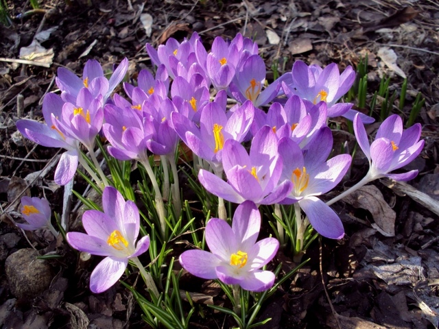 Crocus vernus. Szafran Tommasiniego pochodzi z Bałkanów, jako roślina rodzima występuje na Węgrzech, w Bułgarii, Albanii, krajach byłej Jugosławi. Łaciński przydomek został utworzony na cześć włoskiego botanika Muzio G. Spirito de Tommasini, żyjącego w latach 1794-1879, który oprócz botanicznej działalności zajmował się trochę polityką - był burmistrzem włoskiego Triestu. Uchodzi za jednego z najwcześniej kwitnących krokusów - no, może w naturalnym zakresie występowania. U mnie kwitnie tak jak opisałam w pierwszym zdaniu.