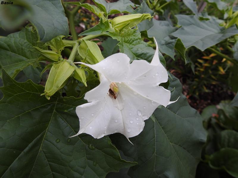 Kwiaty: białe, rzadko niebieskofioletowe, duże, lejkowate, wzniesione, zapylane przez ćmy