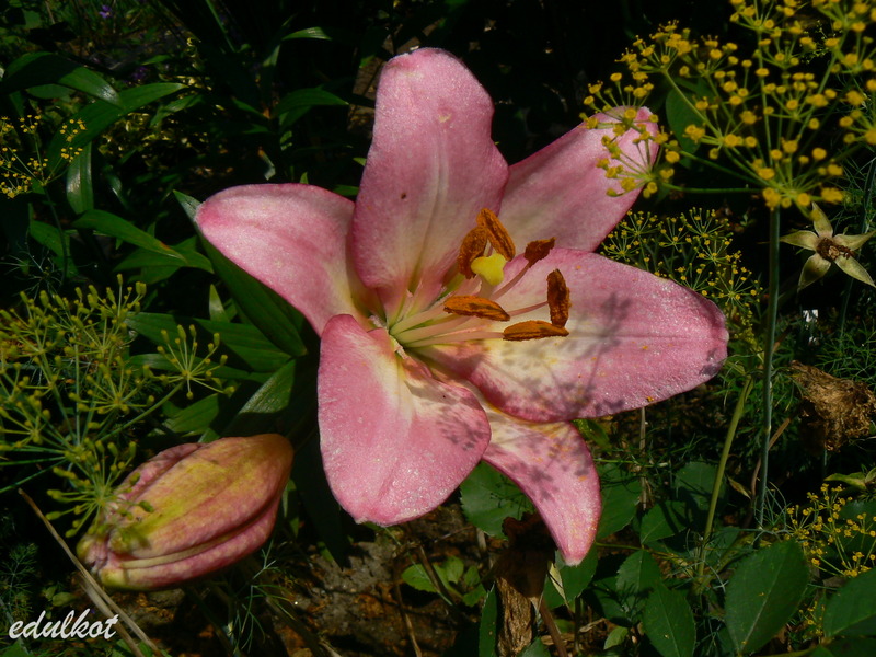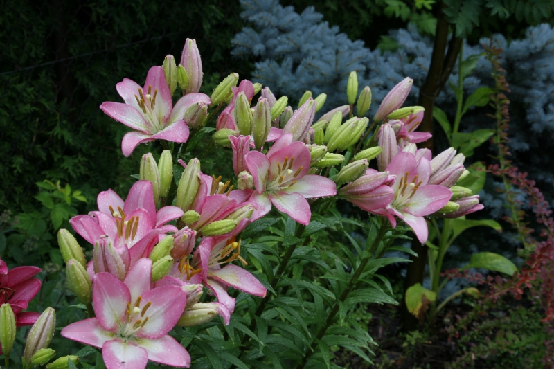 Wysokość: 130 cm Kwiat: różowy Kwitnienie: VI-VII Wymagania: jak u mieszańców azjatyckich – przeciętna ziemia jaką zwykle mamy w ogródkach, gdzie dobrze rosną warzywa, czyli ziemia lekko kwaśna (pH 5,5-6,5) lub obojętna. Zapach: lekko pachnie Mrozoodporność: średnia