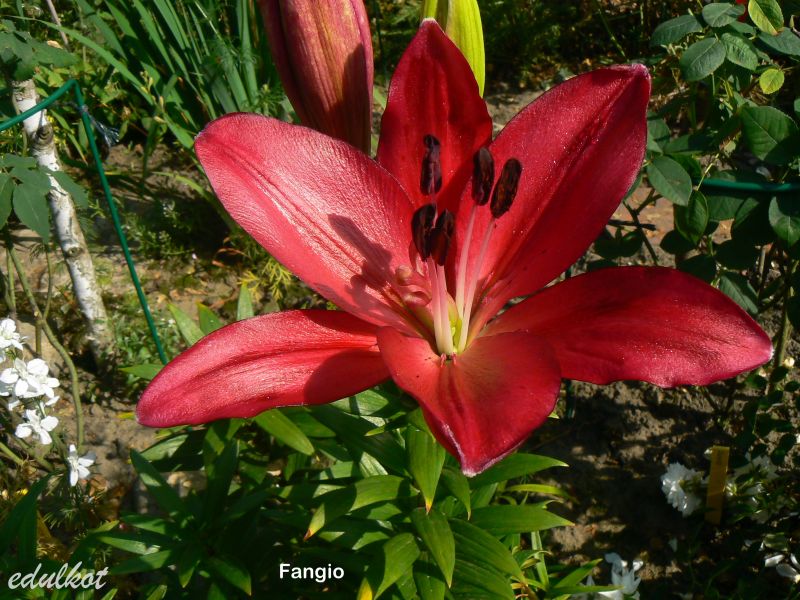 Wysokość: 130 cm Kwiat: czerwony Kwitnienie: VI-VII Wymagania: jak u mieszańców azjatyckich – przeciętna ziemia jaką zwykle mamy w ogródkach, gdzie dobrze rosną warzywa, czyli ziemia lekko kwaśna (pH 5,5-6,5) lub obojętna Zapach: brak Mrozoodporność: średnia