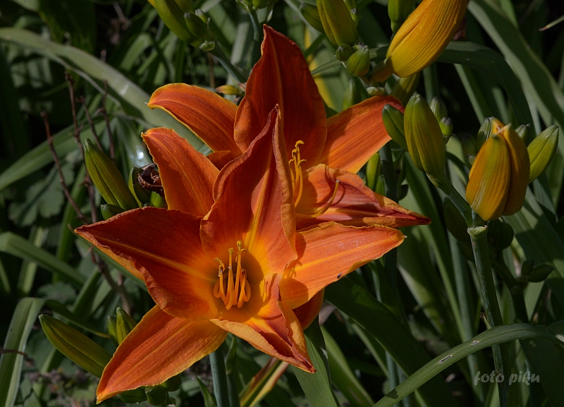 Nazwa tego liliowca nurtuje mnie od kilku lat krecigl . Jest mocny, rośnie zwartą kępą i obficie kwitnie. Ma żywe pomarańczowe barwy.