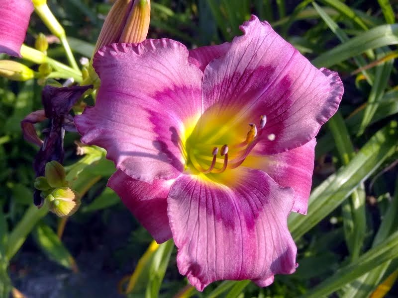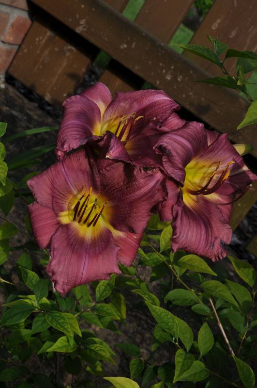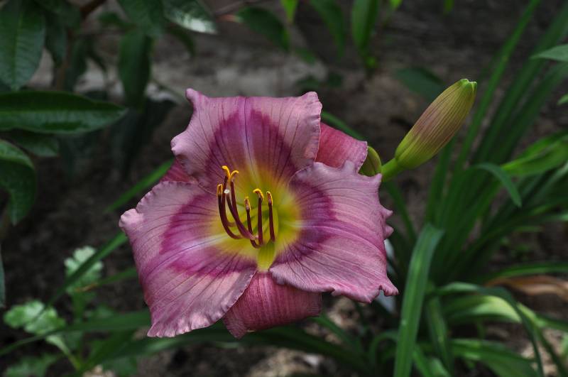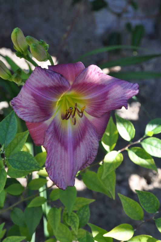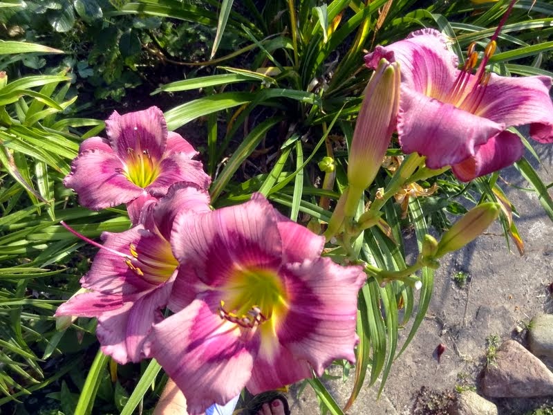 hodowca: Shooter, 1993 wysokość: 60-70 cm kwiat: 14cm w kolorze foletowo-różowym, z wyraźnym mocno różowym okiem i zielonym gardłem. Wykazują sporą zmienność w zależności od pogody. termin kwitnienia: lipiec-sierpień