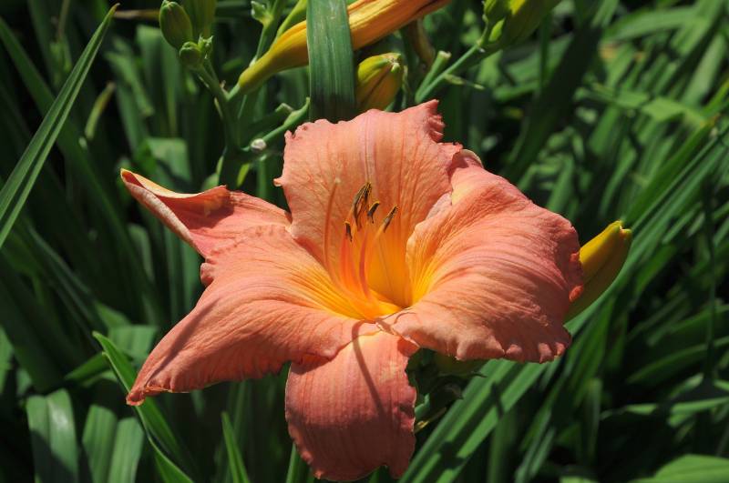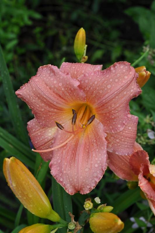 hodowca: Durio, 1979 wysokość: 60-80 cm kwiat: spory, o średnicy 17-18cm w kolorze koralowo-różowym, czasem bardziej brzoskwiniowym, gardziel żółta. termin kwitnienia: lipiec-sierpień