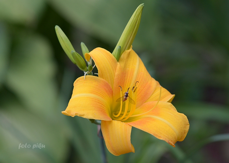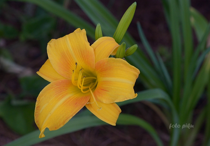 Kwiaty złoto-żółte z pomarańczowym okiem; 15 cm.