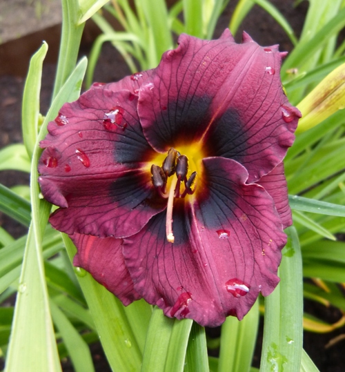 hodowca: Shooter-E., 1993 wysokość: 50cm kwiat: niewielki, ok. 10cm, w kolorze ciemnej purpury lub bordo z czarnym okiem i niewielką, żółtą gardzielą termin kwitnienia: lipiec-sierpień