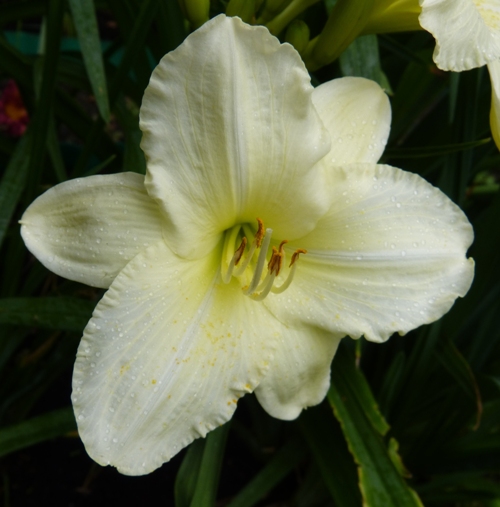 hodowca: Durio, 1977 wysokość: 60-70cm kwiat: o średnicy 15cm w kolorze kremowym z lekkim limonkowym odcieniem i zielonkawą gardzielą. termin kwitnienia: czerwiec-lipiec, może powtarzać kwitnienie