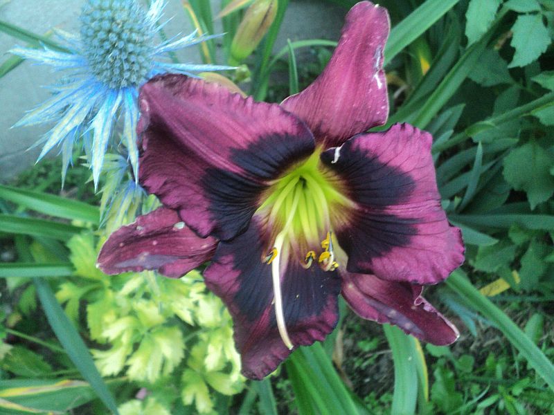 Kwitnie jako jeden z pierwszych , ciemny , jednolicie wybarwiony ,kwitnie niezawodnie. Wielbicielom ciemnych liliowców polecam, w tym sezonie żadnej plamki.