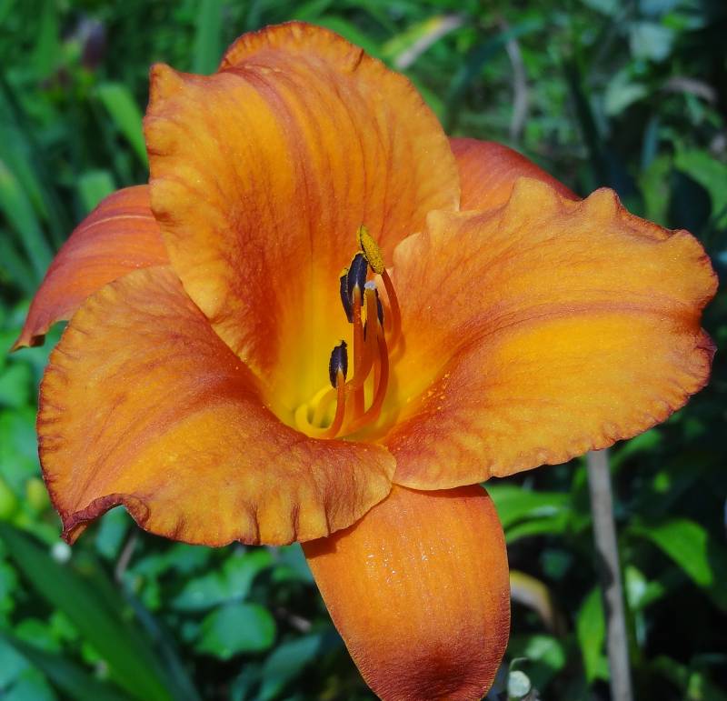 kwiat 12 cm, bursztynowo złoty z ciemnoczerwoną cieniutką lamówką płatków z jasno zieloną gardzielą