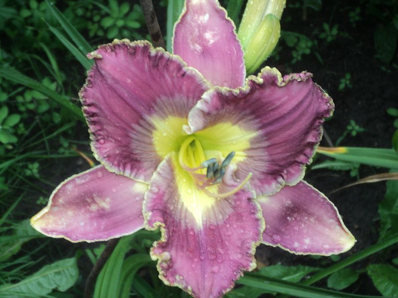 Hodowca: Rice-JA, 2009 Wysokość: ok 70 cm Kwiaty: kwiaty w kolorze lawendowo-szarym ,duże , rozmyte srebrno fioletowe oko gardziel żółta , Petale szerokie, obramowane falbanką w kolorze oka i żółtym marginesem. Wielkość kwiatu ok 15 cm. Stanowisko: słoneczne do półcienistego. Mrozoodporność: zimuje bez okrycia .